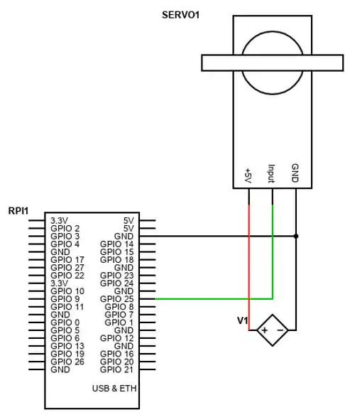 請(qǐng)注意,Raspberry Pi不應(yīng)為伺服提供電壓。相反,使用外部電源來驅(qū)動(dòng)伺服電機(jī),因?yàn)镽aspberry Pi的GPIO引腳可能無法提供足夠的電源來使電機(jī)以可接受的速度轉(zhuǎn)動(dòng)。